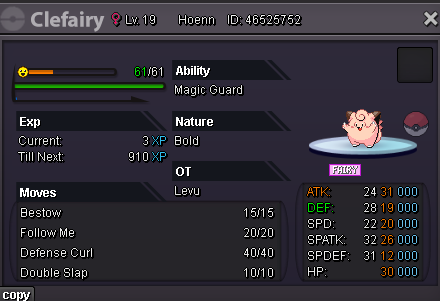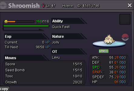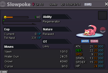 Hello and welcome to my shop! SHOP RULES: - Reasonable negotiations are welcome, although I still keep the right to decline offers outside of the prices given in the shop! - Guaranteed 10% discount when buying 3 or more pokemon - False offers will be reported Accepting the following payment methods: - 500k - 700k (350k for nat. reroll) - 5k And pokedollars - of course CONTACT: IGN: Levu Discord: levu000xd Feel free to contact me on forums, in game, or on discord The pokes listed in the shop are all on my alt - Smallape UNTRAINED: TRAINED