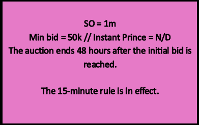 Auction won by Kiopzx for 3.6m You can reach me whenever on silver server.