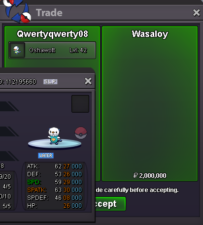 Hi, I'm selling these Pokemon! I'm in Gold server with username Abbeydawn. Message me here or add me in game if you're interested. Gyarados Price: 1000k Nature: Moxie (Best Ability) Stats: 31 IV Atk, 31 IV SpDef (Highest) Solosis Price: 800k Nature: Quiet (Best Ability) Stats: 31 IV HP, 31 IV SpDef (Highest) Larvesta Price: 150k Heracross Price: 80k Piloswine Price: 30k Ninjask Price: 30k Shedinja Price: 30k Pinsir Price: 30k Ralts Price: 30k Sneasel Price: 30k