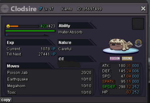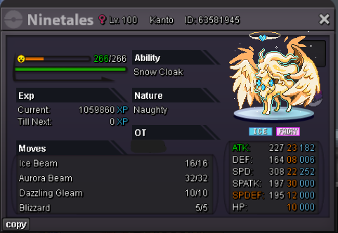 Auction Details ♠ Start Price: 10m ♠ End Point: 48 hours (after start price is met) ♠ No insta ♠ Minimum Raise: 250k ♠ Accepted Payment: Pokedollars, Coin Capsules (x1 Coin Capsule = 500k), IV-Reroll Tickets (x1 IV-Reroll Ticket = 750k) Important Reminders: ♠ This is a Silver Server auction. You may bid from any server but you are responsible for transferring to Silver to claim if you win. ♠ If you intend to purchase with an alt account, specify the account alongside your bid. ♠ If a bid is received in the final 15 minutes of the auction, the end point will be delayed by 15 minutes from that bid, and will be delayed by 15 minutes for each new bid thereafter, until the current offer has been held for a full 15 minutes.