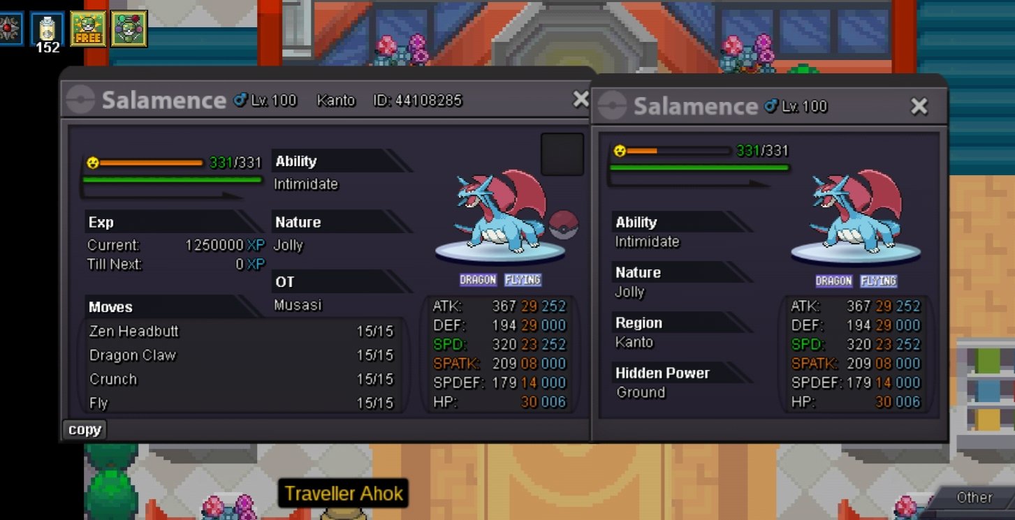 Details: Starting price salamance naive: 150k Starting price salamance jonly: 150k Minimum bid: 50k. Instant bid: N/A Bid deadline: 24 hours after the initial bid Accepted payment: Pokémon Dollars, Coin Capsules (x1 Coin Capsule)=500k.