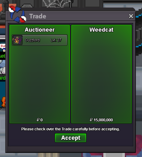 Details: start price: 500k Duration: 24 hours after first bid no insta Minimum Bid: 50k Accepted Payments: Pokedollars cc: 400k