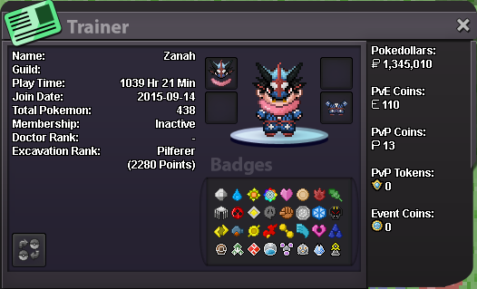 ● What's your IGN? Zamtrios ● How old are you? 24 ● Where are you from? United States ● What's your total playtime? 813 Hours, 10 minutes. ● What do you enjoy doing in the game? I love doing PvE and collecting stuff it's my favorite part of the game. I've been really active recently and getting my excavation rank up. ● Would you like to offer some kind of service to the guild? (ex. Daycare service) I don't mind doing a level service if I'm available cheaper for guild members during events^^ The bidoof form I like the most is Suidoof. :]