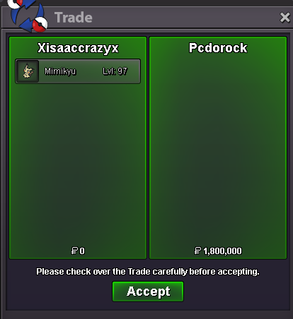 Auction Details: S.O: 12m End Point: 48 hours (after start bid) Insta Price: 18m Minimum Raise: 300k Accepted Payments: Pokedollars, Coin Capsules (500k), IV RR (750k), Nat RR (350k) *"If a bid is placed within the last 15 minutes of the auction, the end time will be extended by 15 minutes from the most recent valid bid, and will continue to extend by 15 minutes for each new bid thereafter until the highest offer has stood for a full 15 minutes."