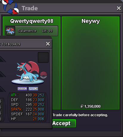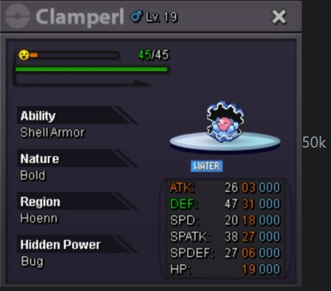 Start Price: 100k End Point: 48 hours (after start price is met) Insta Price: 1m Minimum Raise: 50k Accepted Payments: Pokedollars, Coin Capsules (x1 Coin Capsule = 500k), IV Reroll Tickets = x1 IV Reroll Ticket = 750k) Important Reminders: This is a Silver Server auction. If bidding from an alternative server, state that you will transfer upon winning. If a bid is received in the final 15 minutes of the auction, the end point will be delayed by 15 minutes from that bid, and will be delayed by 15 minutes for each new bid thereafter, until the current offer has been held for a full 15 minutes.