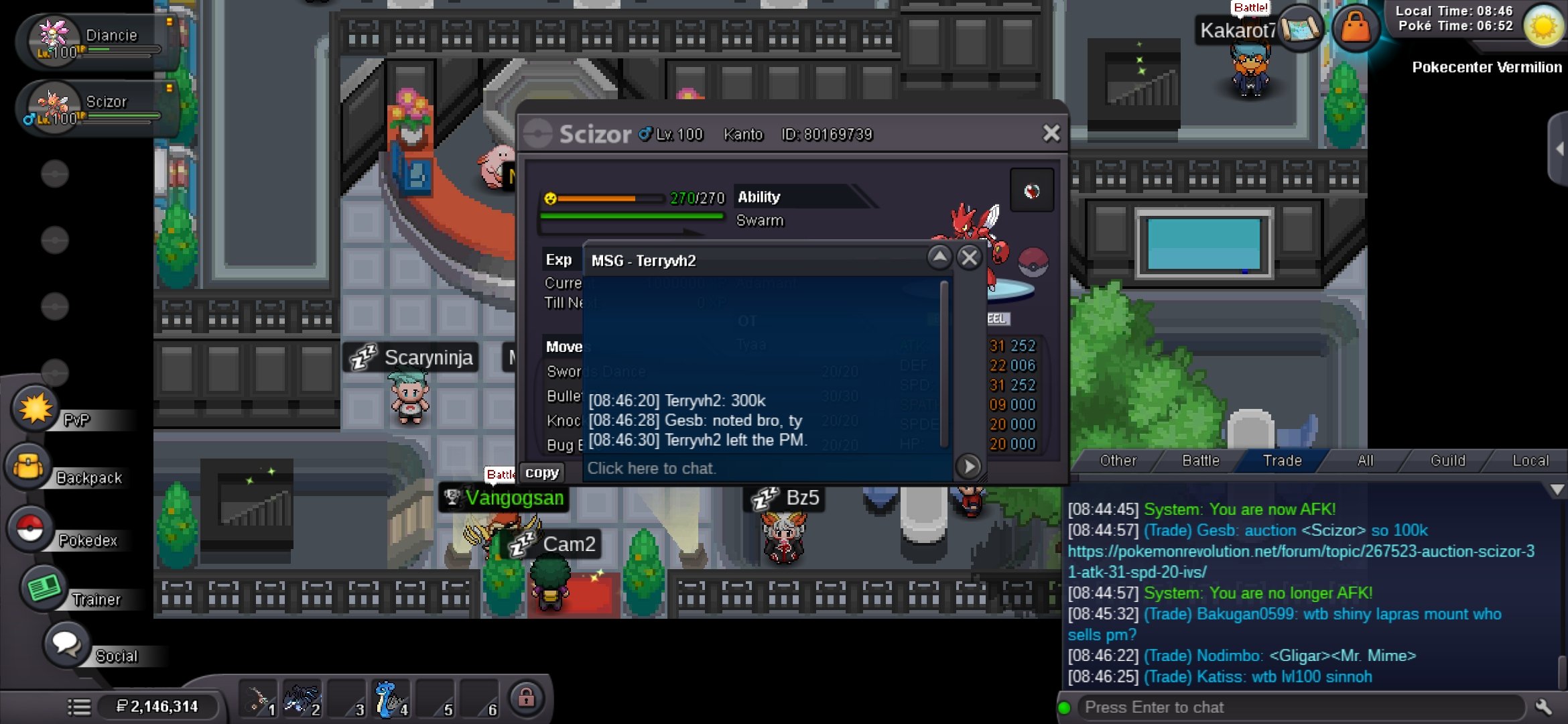 Hi I am doing an auction for this Gligar Starting price is 4m insta 10m min raise 100k duration 48hours since someone starts the auction by placing the starting price, I accept cc (500k each) + pokedollars.