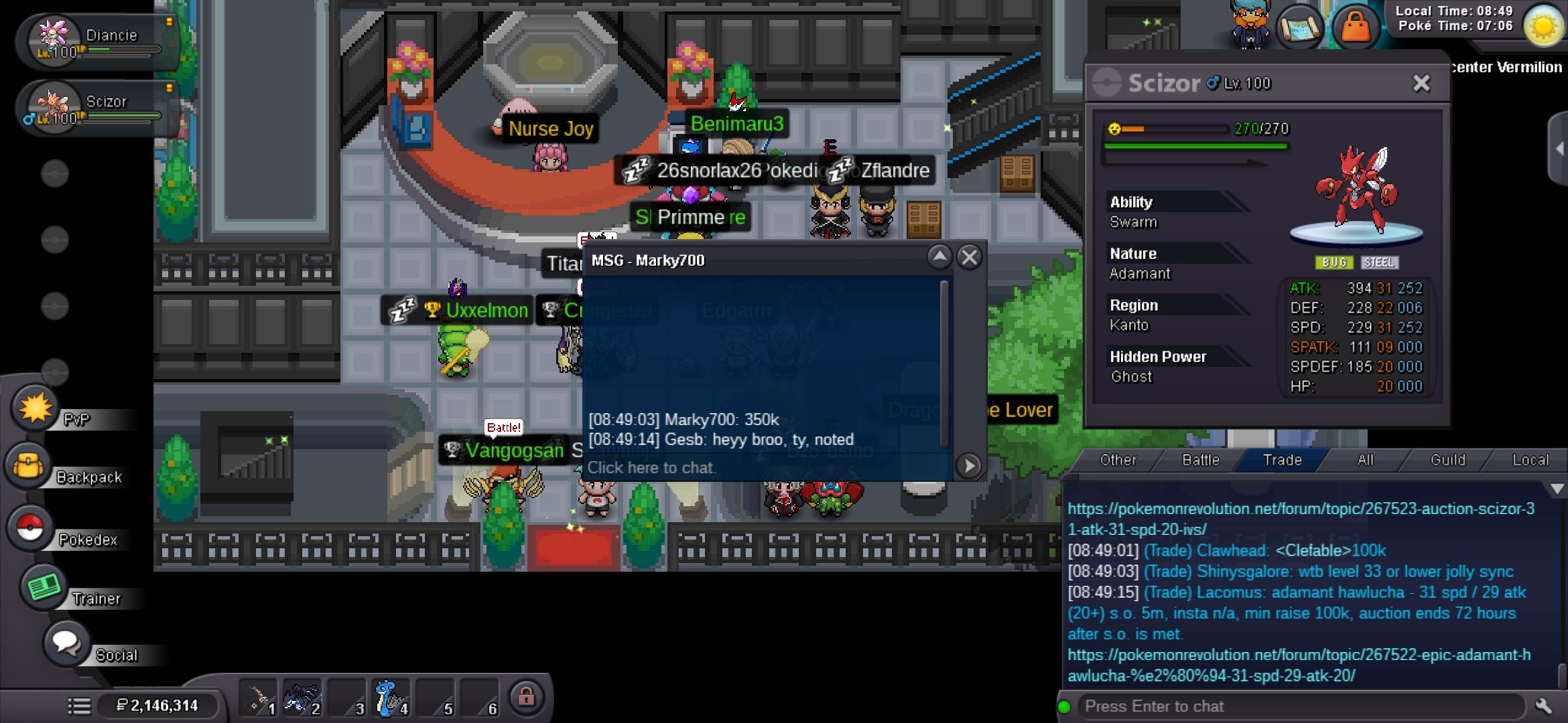 Alt account: Sumocal (Silver Server) Auction Details: Start Price: 5m End Point: 72 hours (after start price is met) Insta Price: N/A Minimum Raise: 100k Accepted Payments: Pokedollars, Coin Capsules (x1 Coin Capsule = 500k), IV Reroll Tickets (x1 IV Reroll Ticket = 750k) Important Reminders: This is a Silver Server auction. However, you may bid from any server, and I will transfer to your preferred server upon winning. If you intend to purchase with an alt account, specify the account alongside your bid. If a bid is received in the final 15 minutes of the auction, the end point will be delayed by 15 minutes from that bid, and will be delayed by 15 minutes for each new bid thereafter, until the current offer has been held for a full 15 minutes. Happy Bidding!