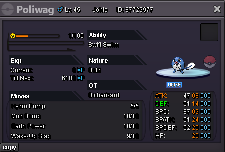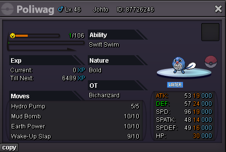 Alt account: Sumocal (Silver Server) Auction Details: Start Price: 10k End Point: 24 hours (after start price is met) Insta Price: N/A Minimum Raise: 10k Accepted Payments: Pokedollars, Coin Capsules (x1 Coin Capsule = 500k) Important Reminders: This is a Silver Server auction. If bidding from an alternative server, state that you will transfer upon winning. If you intend to purchase with an alt account, specify the account alongside your bid. If a bid is received in the final 15 minutes of the auction, the end point will be delayed by 15 minutes from that bid, and will be delayed by 15 minutes for each new bid thereafter, until the current offer has been held for a full 15 minutes. Happy Bidding!