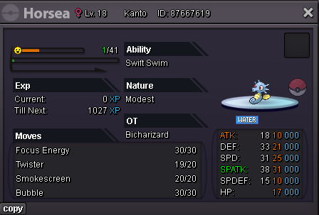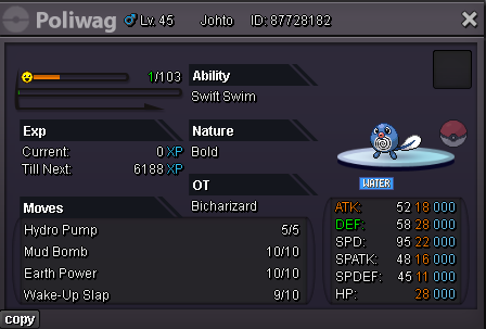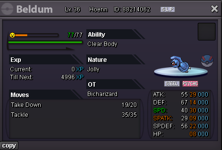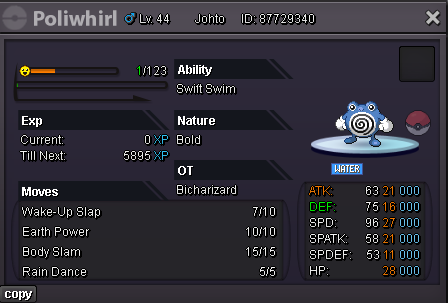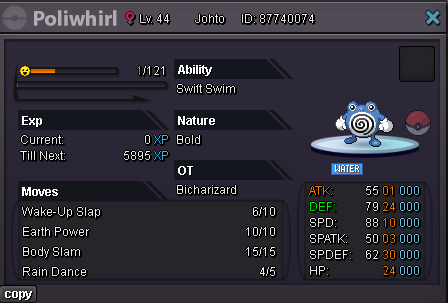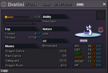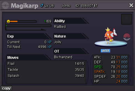 Bicharizard's Shop IGN: Bicharizard Accepted Payments Pokedollar Coin Capsule = 450k Reroll Ticket = 750k Nature Reroll Ticket = 350k Rare Candy = 6k Shop Rules 1. The offer posted can not be changed and cancelled. 2. This is a Gold server shop so I do not transfer to Silver. 3. Price are negotiable, feel free to contact me in game or on the forum. 4. Fake, scam or obscene comments will be reported. 5. Please use English only. Trained Pokemons Untrained Pokemons