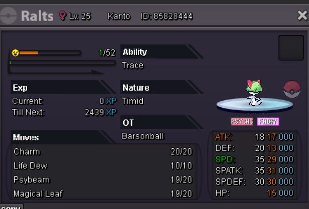 [AUCTION] Skin Ralts Hallowin Female Trace Timid
