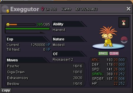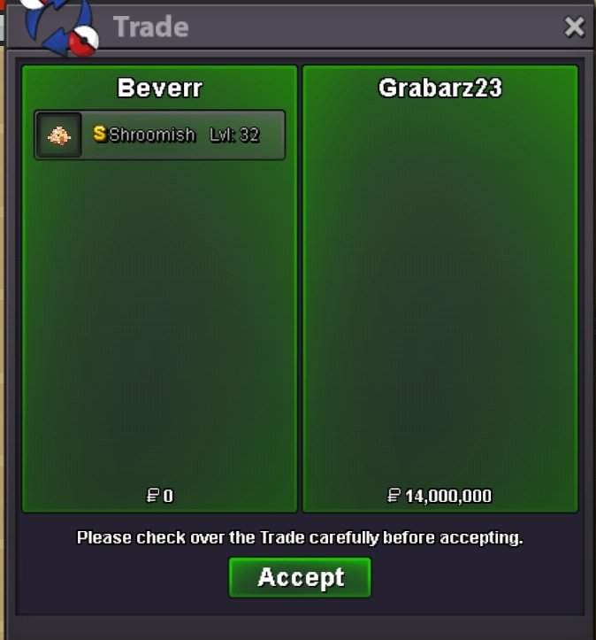 Ends 24 hrs of starting bid S.O 12m Min Bid: 500k ACCEPTED PAYMENTS: Pokedollars Reroll Ticket (700k ea) Nature Reroll (350k ea) Capsule Coins: (450k) Rules: Please include the account name you will be using for the transaction if you are not purchasing with your main account. 15 Minute Rule: If a bid is received in the final 15 minutes of the auction, the end point will be delayed by 15 minutes from that bid. This delay will repeat with each new bid until the current offer has stood for a full 15 minutes. (insta 28m)