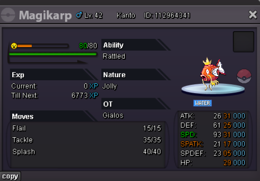 (Not a Bundle) Each Ends 48hrs after S.O. Min Bid: 50k (For All Auctions) Accepted Payments - PokeDollars, CC (480k) 15 Minute Rule in Place Bidding Aron s.o. 200k Gyarados s.o. 200k Magikarp s.o. 200k Barraskewda jolly s.o. 200k Barraskewda ada epic 31atk s.o. 500k