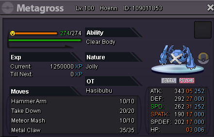 fully trained max speed Metagross. 10k starting offer