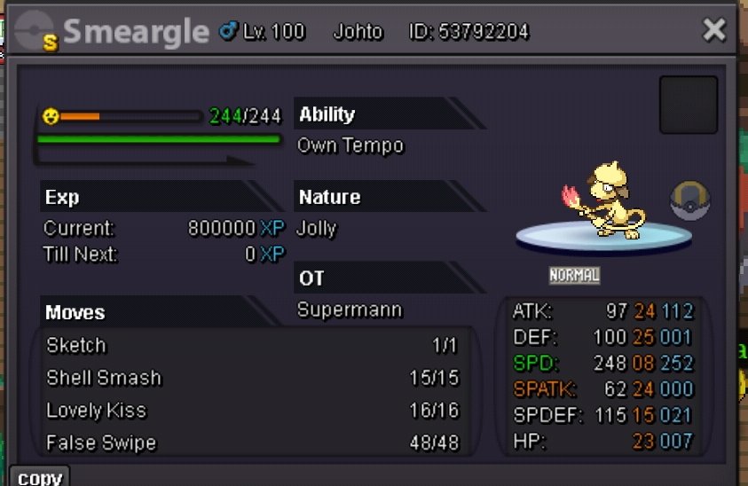 Auction for this lovely Smeargle. Start offer: 6 million. Minimum bid: 500k. Duration: 48 hrs after starting offer is met. C.C.=500k Reroll=750k