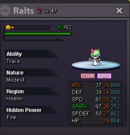 Lysandre started following Summer Trace Ralts (Modest hp fire )