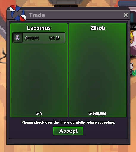 Auction Details: Start Price: 500k End Point: 48 hours (after start price is met) No insta Minimum Raise: 100k Accepted Payments: Pokedollars. Important Reminders: This is a Silver Server auction. If bidding from an alternative server, state that you will transfer upon winning. If you intend to purchase with an alt account, specify the account alongside your bid. If a bid is received in the final 15 minutes of the auction, the end point will be delayed by 15 minutes from that bid, and will be delayed by 15 minutes for each new bid thereafter, until the current offer has been held for a full 15 minutes. Happy Bidding!