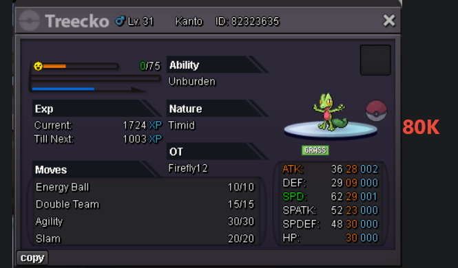 QUICK AUCTION!!! Auction Details: Start Price: 100k End Point: 24 hours (after start price is met) Insta Price: N/A Minimum Raise: 20k Accepted Payments: Pokedollars, Coin Capsules (x1 Coin Capsule = 500k), IV Reroll Tickets (x1 IV Reroll Ticket = 750k) Important Reminders: This is a Gold Server auction. If bidding from an alternative server, state that you will transfer upon winning. If you intend to purchase with an alt account, specify the account alongside your bid. If a bid is received in the final 15 minutes of the auction, the end point will be delayed by 15 minutes from that bid and will be delayed by 15 minutes for each new bid thereafter, until the current offer has been held for a full 15 minutes.