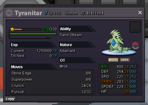 Lacomus started following [Epic] Adamant Tyranitar – 31 SPD / 28 ATK (20+) – Pursuit Set