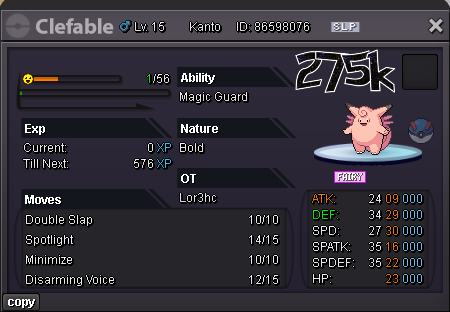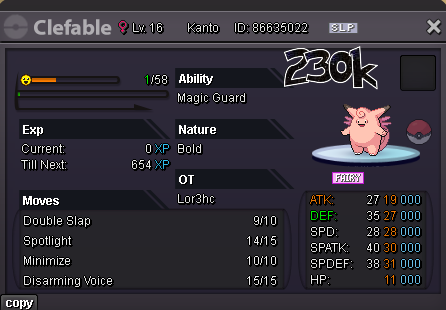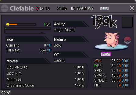 Daily new mons (14/11) On list • Clefairy/Clefable (Bold/Magic Guard) • Larvesta (Timid/Flame Body) • Scraggy (Adamant/Moxie) Fully Trained • Annihilape (Careful/Defiant) • Clefable (Bold/Unaware) HLW Cosmetics & Mounts