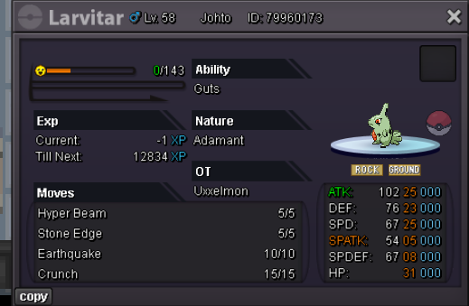 Rules: 1) Fake offers will be reported 2) Some prices are negotiable, feel free to offer. 3) You can't take back your offer. 4) Please PM me ingame or preferable on Discord for a fast response. Ingame: Uxxelmon Discord: fckoffimsalty Payment Methods: Pokedollars CC = 480K Nature Reroll = 360K IV Reroll Ticket = 720K Untrained Abra Abra 1 Abra 3 Abra 4 Absol Absol 2 Alomomola Alomomola 1 Alomomola 2 Alomomola 3 Alomomola 4 Bagon Bagon 1 Bagon 3 Buneary Buneary 1 Buneary 2 Charmander Charmander 1 Charmander 2 Charmander 3 Chimchar Chimchar 1 Chimchar 2 Clefairy/Clefable Clef 1 Clef 2 Clef 3 Corpfish Crawdaunt 2 Cutiefly Cutiefly 1 Darumaka Darumaka 1 Deino Deino1 Dratini Dratini 1 Drilbur Drilbur1 Eevee Eevee2 Eevee4 Eevee 5 Eevee 6 Electrike Electrike 1 Electrike 2 Electrike 3 - hp ice Ferroseed Ferroseed 2 Ferroseed 3 Foongus Foongus 1 Foongus 2 Foongus 3 Foongus 4 Froakie Froakie 1 Froakie 3 Gible Gible 1 Gible 2 Gible 3 Gible 4 Gible 5 Gible 6 Gible 7 Gible 8 Gible 9 Gible 10 Gible 11 Gible 12 Gible 13 Gible 14 Gible 15 Goomy Goomy 1 Goomy 2 Hawlucha Honedge Honedge 1 Honedge 2 Jangmo-o Jangmo-o 1 Larvesta Larvesta 3 Larvitar Larvitar 1 Lilipup Hide contents Lillipup 1 Magikarp Magikarp 1 Magnemite Magnemite 1 Marill(empty atm) Mawile Mawile 1 Meditite Meditite 1 Meditite 2 Meditite 3 Meditite 4 Meditite 5 Meditite 6 Meditite 7 Meditite 8 Meditite 9 Meditite 10 Mudkip Mudkip 1 Mudkip 2 Mudkip 3 Marshtomp 4 Mudkip 5 Pawniard Pawniard 1 Porygon Porygon 1 Riolu Rioulu 1 Riolu 2 Rotom Rotom 3 Rotom 5 Rotom 7 Scyther Scyther 1 Scyther 2 Scyther 6 Scyther 7 Scyther 8 Scyther 10 Scyther 11 Scyther 12 Scyther 13 Scyther 14 Scyther 15 Scyther 16 Scyther 17 Scyther 18 Shellder Shellder 1 Shellder 2 Shellder 3 Shroomish Shroomish 1 Shroomish 3 Skarmory Skarmory 1 Slowpoke Slowpoke 1 Sneasel-Hisui Sneasel Hisui 1 Swablu Swablu 2 Tangela Tepig Tepig 1 Teddiursa Teddy 1 Teddy 2 Teddy 3 Teddy 4 Treecko Treecko 1 Vulpix (empty) Zorua Zorua 3
