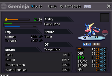 [PvP-Ready] Timid Battle Bond Greninja — 30/30 HP Fire