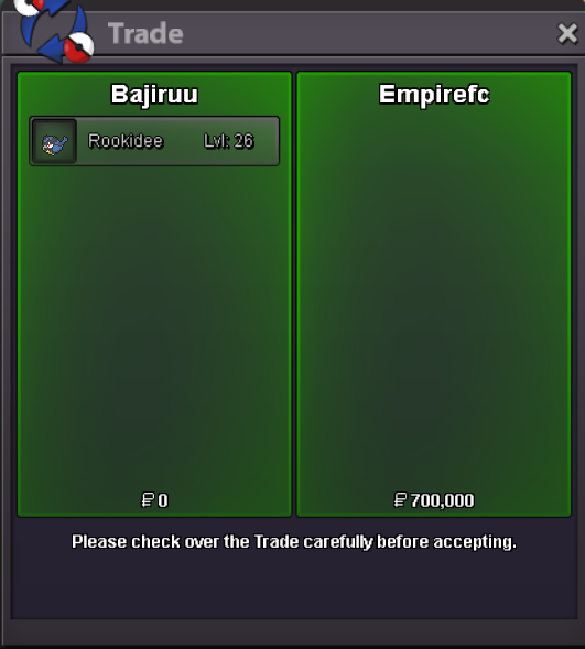 Start Price: 100k End Point: 1 hours (after start price is met) no Insta Price Minimum Raise: 50k Accepted Payments: Pokedollars, Coin Capsules (x1 Coin Capsule = 500k) Important Reminders: This is a Silver Server auction. If bidding from an alternative server, state that you will transfer upon winning. If a bid is received in the final 15 minutes of the auction, the end point will be delayed by 15 minutes from that bid, and will be delayed by 15 minutes for each new bid thereafter, until the current offer has been held for a full 15 minutes.
