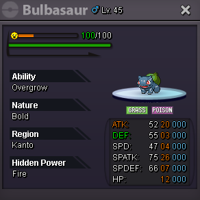 Start price: 100k End point: 48 hours (after start price is met) Insta price: N/A Minimum raise: 100k Accepted payments: Pokedollars, coin capsules (x1 coin capsule = 500k), IV reroll tickets (x1 IV reroll ticket = 750k) Important reminders: If you intend to purchase with an alt account, specify the account alongside your bid. If a bid is received in the final 15 minutes of the auction, the end point will be delayed by 15 minutes from that bid, and will be delayed by 15 minutes for each new bid thereafter, until the current offer has been held for a full 15 minutes.