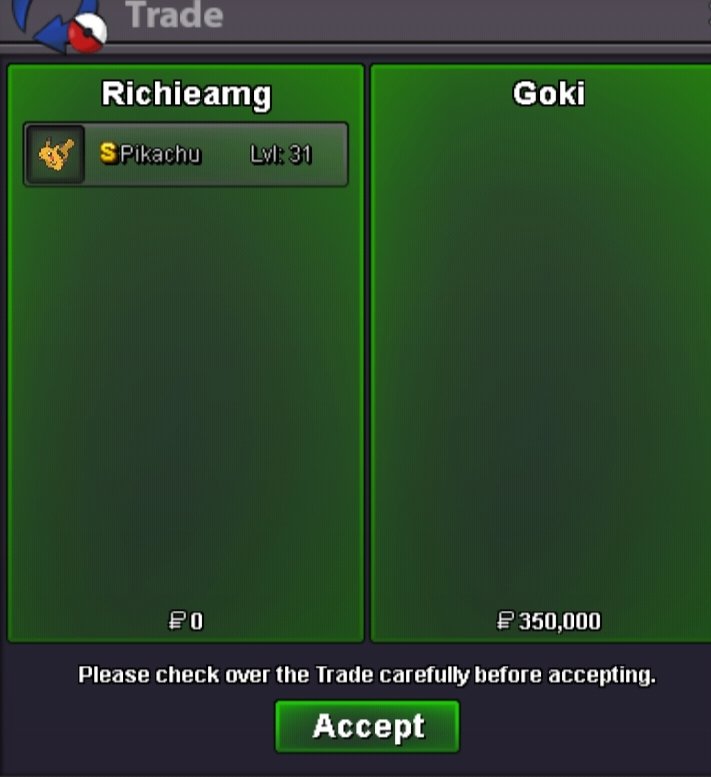 Auction Details: Start bid: 350k Min raise: 25k No Insta price This is a Gold server auction, you will have to transfer if you are a silver server player. This auction will end 48 hours after the starting bid is met. 15 minute rule is enabled. Accepted Payments: Pokedollars is preferred, BMS: 200k/per (max 2). IGN: Marthandan Discord: matj07