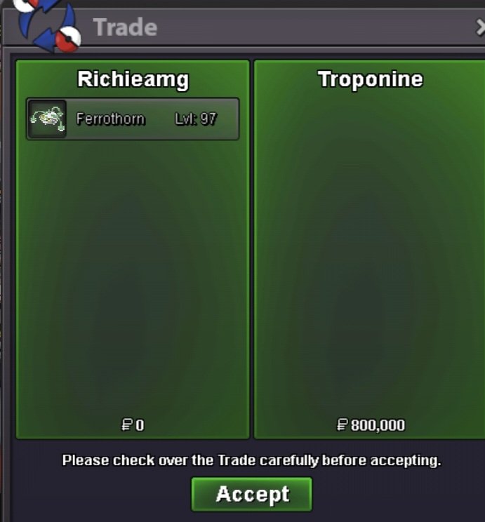 Start Price: 5m End Point: 48H (after start price is met) Insta Price: N/A Minimum Raise: 200k Payments: Pokedollars, Coin Capsules (x1 Coin Capsule = 500k) Important Reminders: This is a Silver Server auction. If bidding from an alternative server, state that you will transfer upon winning. If you intend to purchase with an alt account, specify the account alongside your bid. If a bid is received in the final 15 minutes of the auction, the end point will be delayed by 15 minutes from that bid, and will be delayed by 15 minutes for each new bid thereafter, until the current offer has been held for a full 15 minutes.
