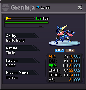 Kosakok started following Greninja battle bond Timid 31spd 22+
