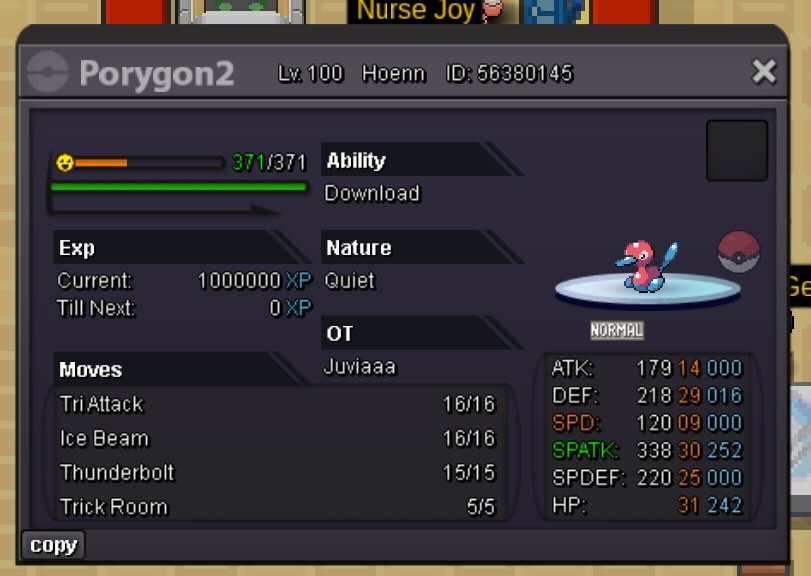 Auction Details Start Price: 5m End Point: 48 Hours (after start) Insta Price: N/A Minimum Raise: 200K Accepted Payments: Pokedollars / 1x CC = 500K / 1x IV RR = 700K Server Name: Gold Important Reminders This is a Gold Server auction. You may bid from any server but you must transfer to Gold Server upon winning the auction. If you intend to purchase with an alternate account or from other server, please specify the account name and/or server name alongside your bid. 15 minutes rule is applied. (If a bid is received in the final 15 minutes of the auction, the end point will be delayed by 15 minutes from that bid, and will be delayed by 15 minutes for each new bid thereafter, until the current offer has been held for a full 15 minutes). Please check the Trade Rules and Auction Rules if you are new to trading in PRO.