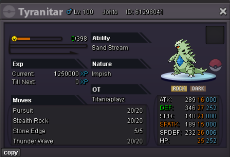 Titaniaplayz started following Impish 25+ bulk Tyranitar