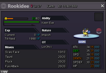 Lor3hcc started following Rookidee - Impish / Keen Eye 31 DEF 23+ Bulk