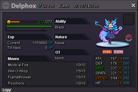 Auction Details End Point: 48 hours each poke (after 1st bid) Specting offer 200k Insta Price: N/A Minimum Raise: 100k Accepted Payments: Pokedollars, Coin Capsules (x1 Coin Capsule = 450k), IV Reroll Tickets (x1 IV Reroll Ticket = 650k) If you intend to purchase with an alt account, specify the account alongside your bid. This is a silver auction if u are from gold you need to transfer.
