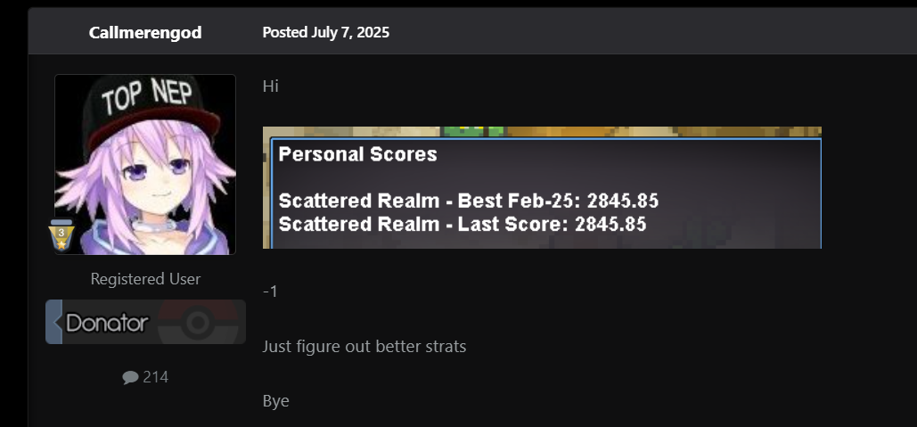 Dude, I'm taking it you've been playing PRO, both PvE and PvP, since 2015, right? What more do you want to make things easier for new players? They have everything handed to them on a silver platter these days, and yet they still ask for more. I literally come from the dinosaur era, where even berries took longer to respawn, there were no hardcoded moves, the requirements for everything were outrageous, and so on. I'm not bragging about 3100 points, on the contrary, I'll repeat what you said in another post where you shared your score and told them to keep looking for better strategies. Why don't you say the same thing now? @Callmerengod Indeed, you can use Choice items, life orbs, gems, items with increased damage, etc. However, a Z-Crystal helps you guarantee one-hit KOs and avoid burn-type status effects. Therefore, I still think Hoopa Dungeon isn't a dungeon for beginners due to its randomized map entry and the wilds, which, although they don't change their Pokémon, do appear differently. That's why 100% dungeon scouting is essential to avoid mistakes and allow new players to learn. But what happens? Neither you nor I are going to provide that scouting to our entire guild, much less to our rivals. On the other hand, many of these new players only do this dungeon until they obtain Hoopa Unbound, either to keep it or because of its brutality in PvP. But, if you wanted to attract more players, what would you do? Because before the HM nerf you were totally against knowing which portal would be used and being able to change it at a cost of - points.