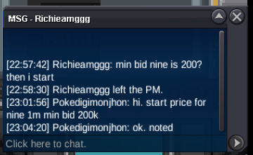 [ALMOST SEMI-GODLY GIBLE | JOLLY | ROUGH SKIN | 28SPD | 28ATK] #1 Start Point: 500k End Point: [48 hours after start is met] Insta: N/A Min. Raise: 100k Accepted Payment(s): Poke dollars , Coin Capsules ( 1 x Coin Capsule = 500k ) [TOTODILE | JOLLY | SHEER FORCE | 31SPD | 30ATK] #2 Start Point: 500k End Point: [48 hours after start is met] Insta: N/A Min. Raise: 100k Accepted Payment(s): Poke dollars , Coin Capsules ( 1 x Coin Capsule = 500k ) [SCYTHER | ADAMANT | TECHNICIAN | 31SPD | 31ATK] #3 Start Point: 600k End Point: [48 hours after start is met] Insta: N/A Min. Raise: 100k Accepted Payment(s): Poke dollars , Coin Capsules ( 1 x Coin Capsule = 500k ) [GIBLE | JOLLY | ROUGH SKIN | 31SPD | 31ATK] #4 Start Point: 600k End Point: [48 hours after start is met] Insta: N/A Min. Raise: 100k Accepted Payment(s): Poke dollars , Coin Capsules ( 1 x Coin Capsule = 500k ) [ALMOST SEMI-GODLY CLODSIRE | 20+ | 30 x 3 | IMPISH | WATER ABSORB | 28ATK/30DEF/30SPD/28SPATK/30SPDEF/HP] #5 Start Point: 1M End Point: [48 hours after start is met] Insta: N/A Min. Raise: 100k Accepted Payment(s): Poke dollars , Coin Capsules ( 1 x Coin Capsule = 500k ) Important Reminders - This is a Gold Server auction. You may bid from any server but you must transfer to Gold Server upon winning the auction. - If you intend to purchase with an alternate account or from other server, please specify the account name and/or server name alongside your bid. - 15 minutes rule is applied. (If a bid is received in the final 15 minutes of the auction, the end point will be delayed by 15 minutes from that bid, and will be delayed by 15 minutes for each new bid thereafter, until the current offer has been held for a full 15 minutes) - Please check the Trade Rules and Auction Rules if you are new to trading in PRO. Again, thank you for the support to all bidders and viewers, Enjoy the Auction, Happy Bidding. MAY THE BID WAR BEGIN!