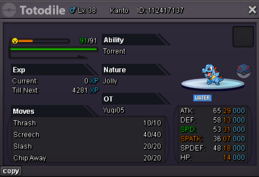 Yuqi05 started following Decent Totodile 31Spd/29atk( future mega)