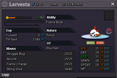 Ryuchen started following [Auction 24h] Larvesta timid 27+