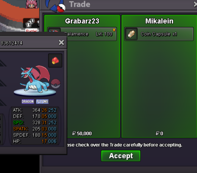 Hello @Leonardosenpai & @Gracee I have force the trade of the Auction here. 10k have been deducted from @Gracee's Account. 10k have been added to @Leonardosenpai's Account. Abra, both Gible, Sableye, Horsea, Zorua and Magbye has been transfered to @Gracee's Account. In the future if you need help, please use the report button. Kinda Regards Glitterwing