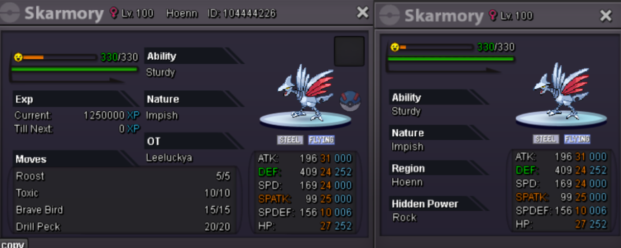 Auction Open. ACCEPT PAYMENT: CC - 500k, Iv reroll - 650k, Nat reroll - 300k, PokeDollars Duration 48 hours after the first start Charizard 500k start, min bid 1k, insta N/A Excadrill 500k start, min bid 1k, insta N/A Garchomp 500k start, min bid 1k, insta N/A (31/31) Gengar 500k start, min bid 1k, insta N/A Rotom 500k start, min bid 1k, insta N/A Skarmory 500k start, min bid 1k, insta N/A