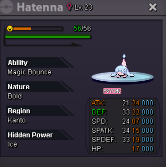 Start Price: 100k End Point: 24 hours (after start price is met) Insta Price: 1m Minimum Raise: 100k Accepted Payments: Pokedollars, Coin Capsules (x1 Coin Capsule = 500k), IV Reroll Tickets = x1 IV Reroll Ticket = 700k) Important Reminders: This is a Silver Server auction. If bidding from an alternative server, state that you will transfer upon winning. If a bid is received in the final 15 minutes of the auction, the end point will be delayed by 15 minutes from that bid, and will be delayed by 15 minutes for each new bid thereafter, until the current offer has been held for a full 15 minutes.