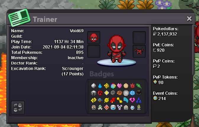 ● What's your IGN? Void69 ● How old are you? 23 ● Where are you from? Germany ● What's your total playtime? 1137 hours ● What do you enjoy doing in the game? i enjoy hunting for forms the most ● Would you like to offer some kind of service to the guild? (ex. Daycare service) not really planned but im happy to help if needed Which Bidoof Form do you like the most? Endoof is the best for sure