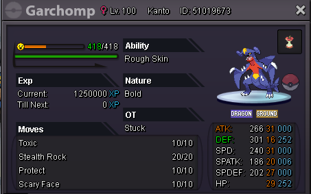Vipez006 started following Tank Garchomp with 31 spd, good ivs (HA) also useable for spatk