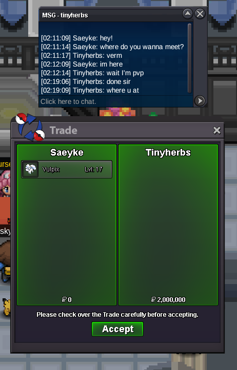 Start Price: 200k End Point: 48hr (after start price is met) Insta Price: N/A Minimum Raise: 100k Accepted Payments: Pokedollars, Coin Capsules (x1 Coin Capsule = 500k), IV Reroll Tickets (x1 IV Reroll Ticket = 700k)