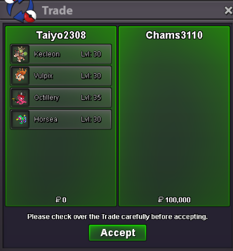 Starting offer: 400K Minimum bid: 100K Insta price: 5M Auction hour: 24 hours after first bid Server: Silver Payments accepted: Pokedollars only 15 minute rule applies Good luck!