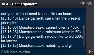 Starting Bid: 10M Min Bid: 100K Insta: N/A Duration: 24h after first bid Accepted items Coin Capsule -500k Iv Reroll ticket - 750k