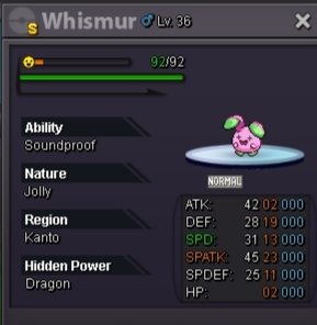 Auction Details: Start Price: 5m End Point: 48 hours (after start price is met) Insta Price: N/A Minimum Raise: 100k Accepted Payments: Pokedollars, Coin Capsules (x1 Coin Capsule = 500k), IV Reroll Tickets (x1 IV Reroll Ticket = 700k) Important Reminders: This is a Cross Server auction. You may bid from any server but you need to transfer. (This Poke is in silver) If you intend to purchase with an alt account, specify the account alongside your bid. If a bid is received in the final 15 minutes of the auction, the end point will be delayed by 15 minutes from that bid, and will be delayed by 15 minutes for each new bid thereafter, until the current offer has been held for a full 15 minutes. Happy Bidding!