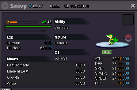 Pokkie started following Max spd HA, hp: fire/ 20+ snivy