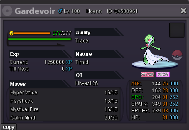 Auction Details: Start Price: 1m End Point: 48 hours (after start price is met) Insta Price: N/A Minimum Raise: 100k Accepted Payments: Pokedollars, Coin Capsules (x1 Coin Capsule = 500k), IV Reroll Tickets (x1 IV Reroll Ticket = 750k), Nature Reroll Tickets (x1 Nature Reroll Ticket = 375k) Happy bidding!