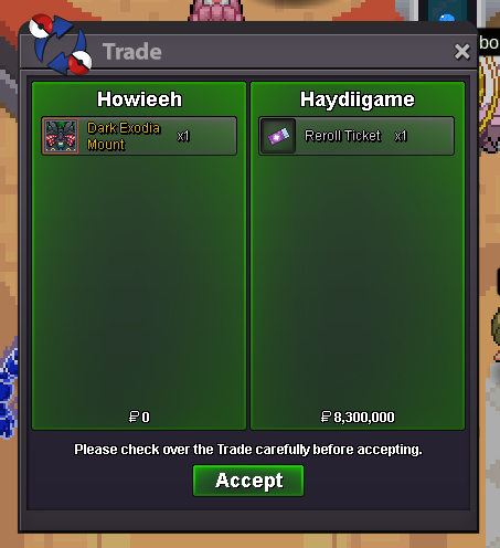 Hello everyone, This auction start is invalid. Therefore @Envymeister if you wish to start please do so. If not the auction starts with the first 5m bid thats Valid. To avoid causing more damage, we will reset the auction. If necessary trade will be forced at the end of the auction. The Auction will follow the original rules stated in the post: S.o ---> 5m Mind Bid ---> 250k Endpoint 72 hours after start price is met. No insta price Coin Capsules ---> 500k The appropriate actions outside the action have been taken. Best Regards, Glitterwing -